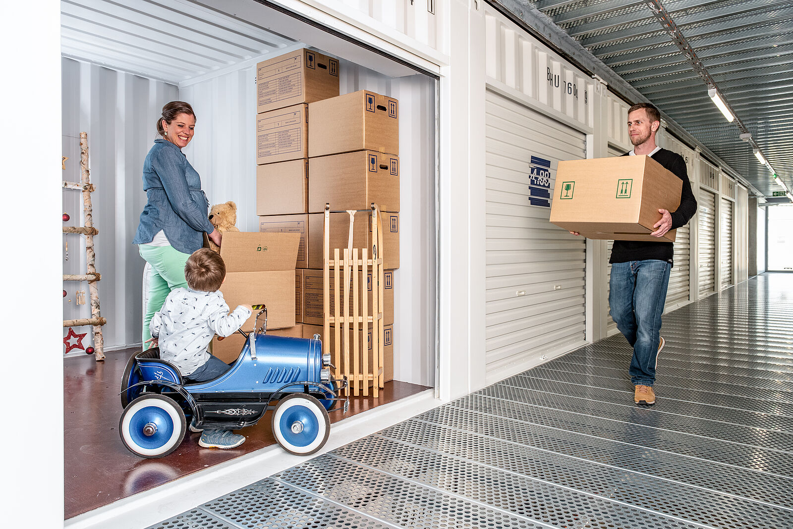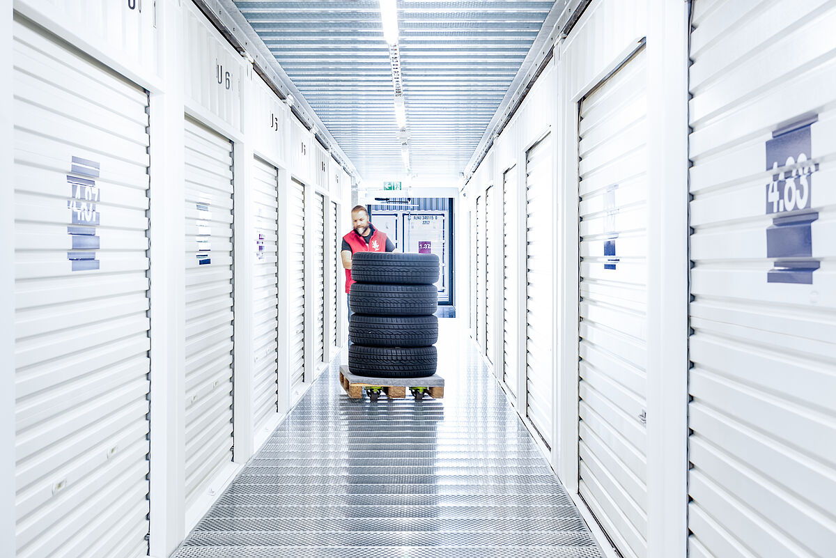 Die Container-Boxen können zusätzlich mit Regalen ausgestattet werden. Für den Transport stehen Ihnen diverses Rollmaterial und bei Bedarf unsere Mietwagen zur Verfügung.
